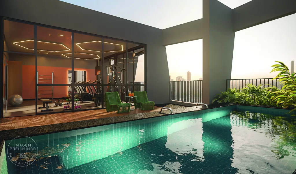 Sim, o projeto conta com lazer na cobertura, incluindo piscina, academia e áreas de convivência, além de coworking e lavanderia.